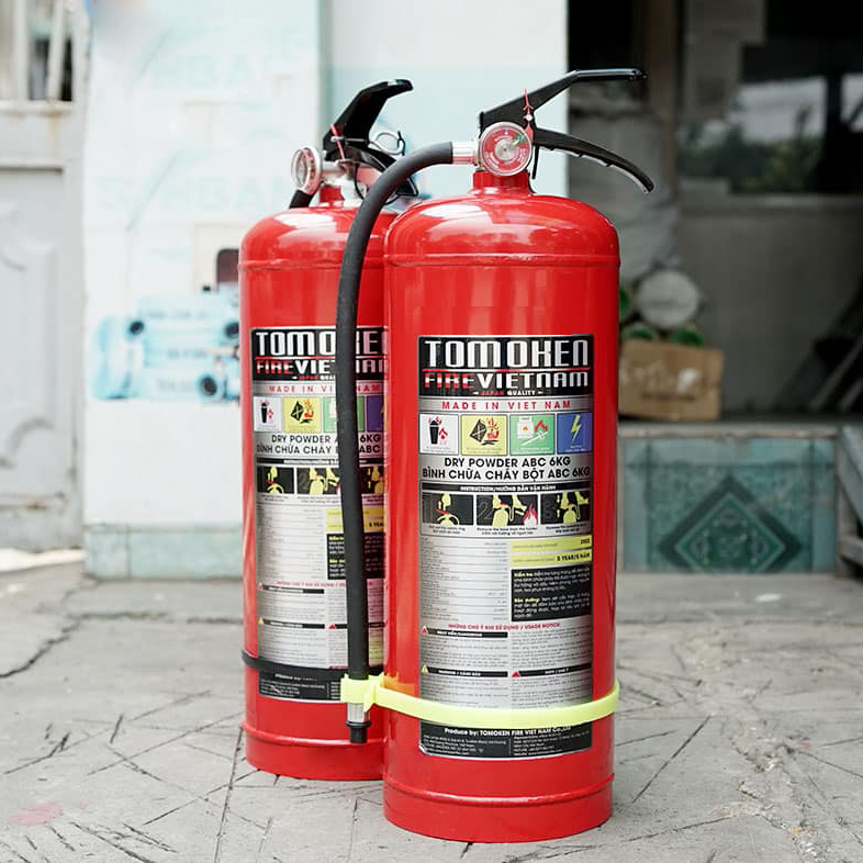 Cách sử dụng bình chữa cháy là khi xảy ra đám cháy, bạn mang bình Tomoken ABC 5kg đến gần đám cháy, đặt bình một cách ngược và lắc mạnh khoảng 5-7 lần. Sau đó, bạn rút chốt bảo hiểm và cầm vòi phun hướng vào đám cháy, sau đó mở van để phun bột vào ngọn lửa.
